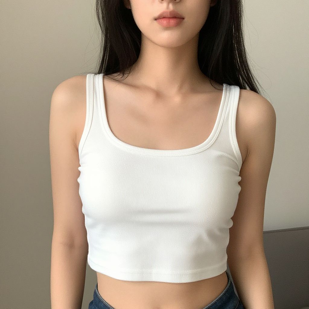 "aesthetic crop tops, 1girl, solo, realistic, black hair, looking at viewer, upper body, lips Realistic photo of casual sexy person with pretty face"