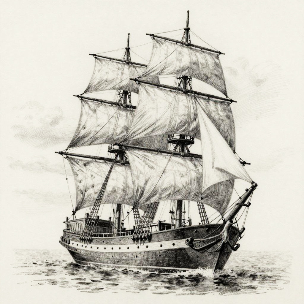 Vintage Sailing Ship Pencil Sketch