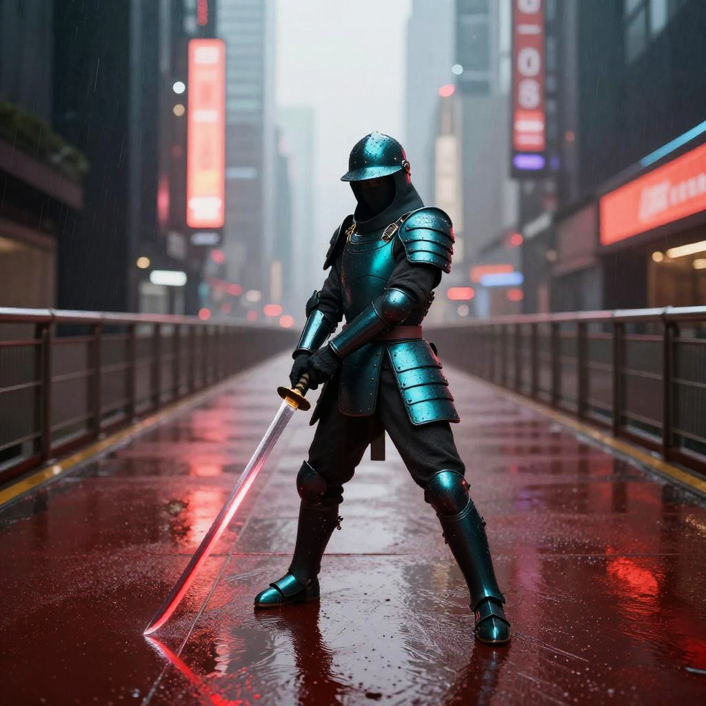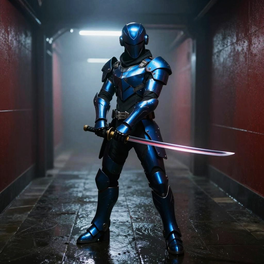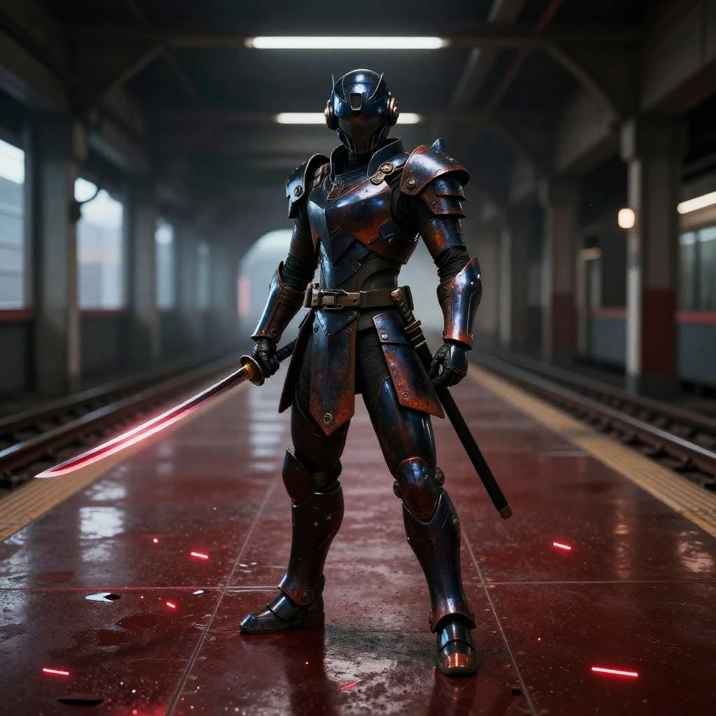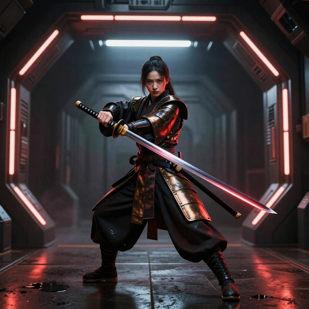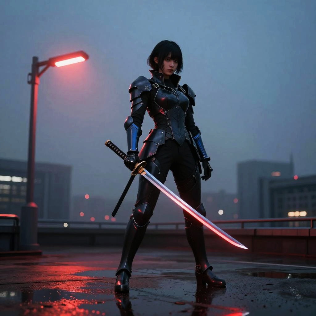 Futuristic Chrome Armored Female Warrior with Katana