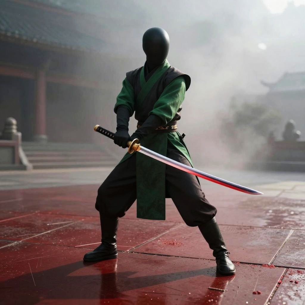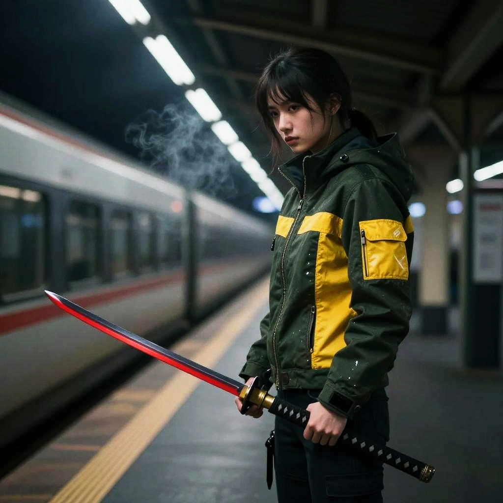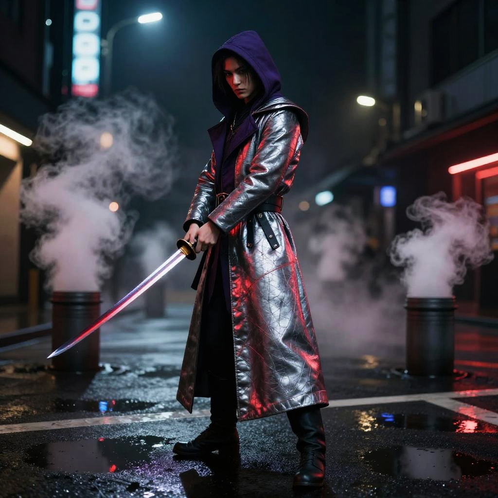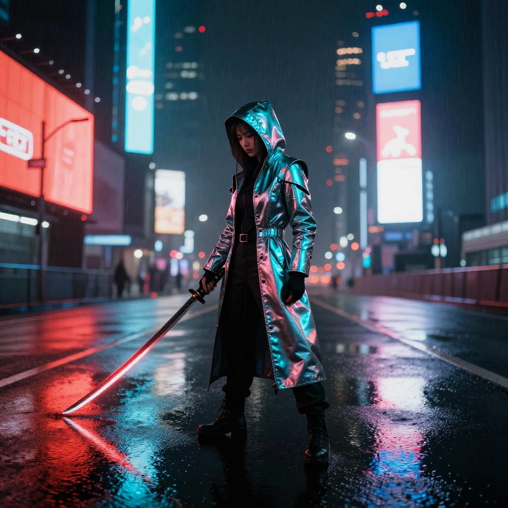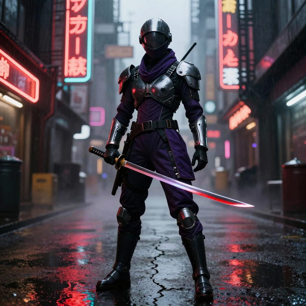 Futuristic Chrome Armored Female Warrior with Katana