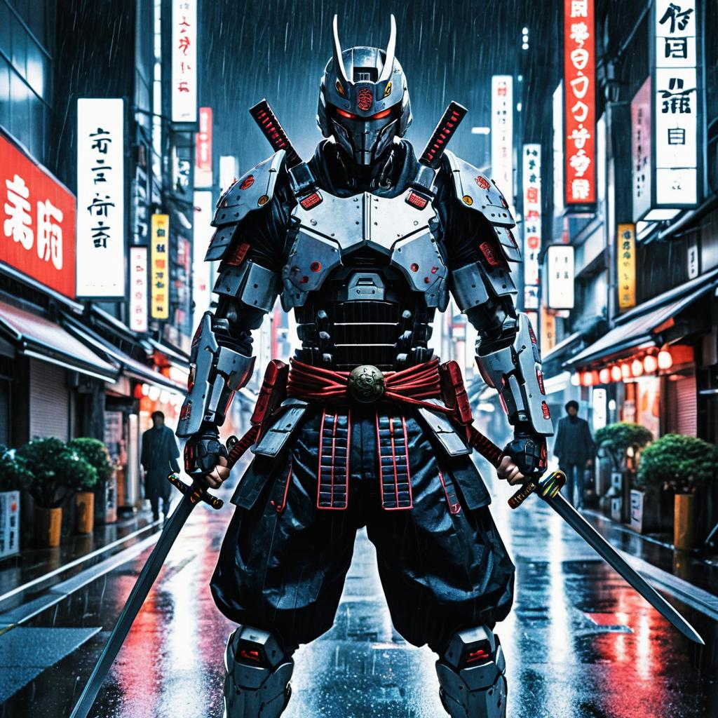 Giant Samurai Robot in Futuristic Neon City
