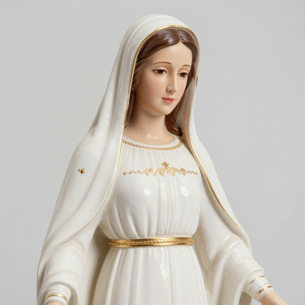 Mama Mary Costume, a close up of a statue of a woman in a white dress