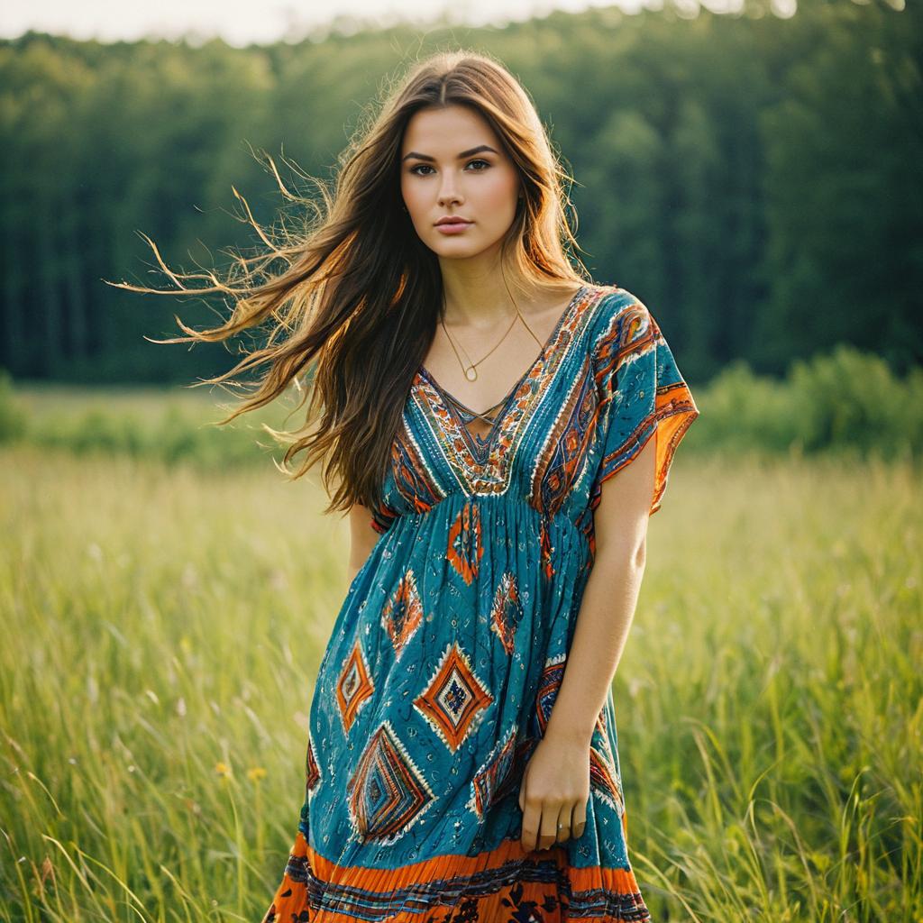 Photorealistic Summer Woman in Bohemian Dress