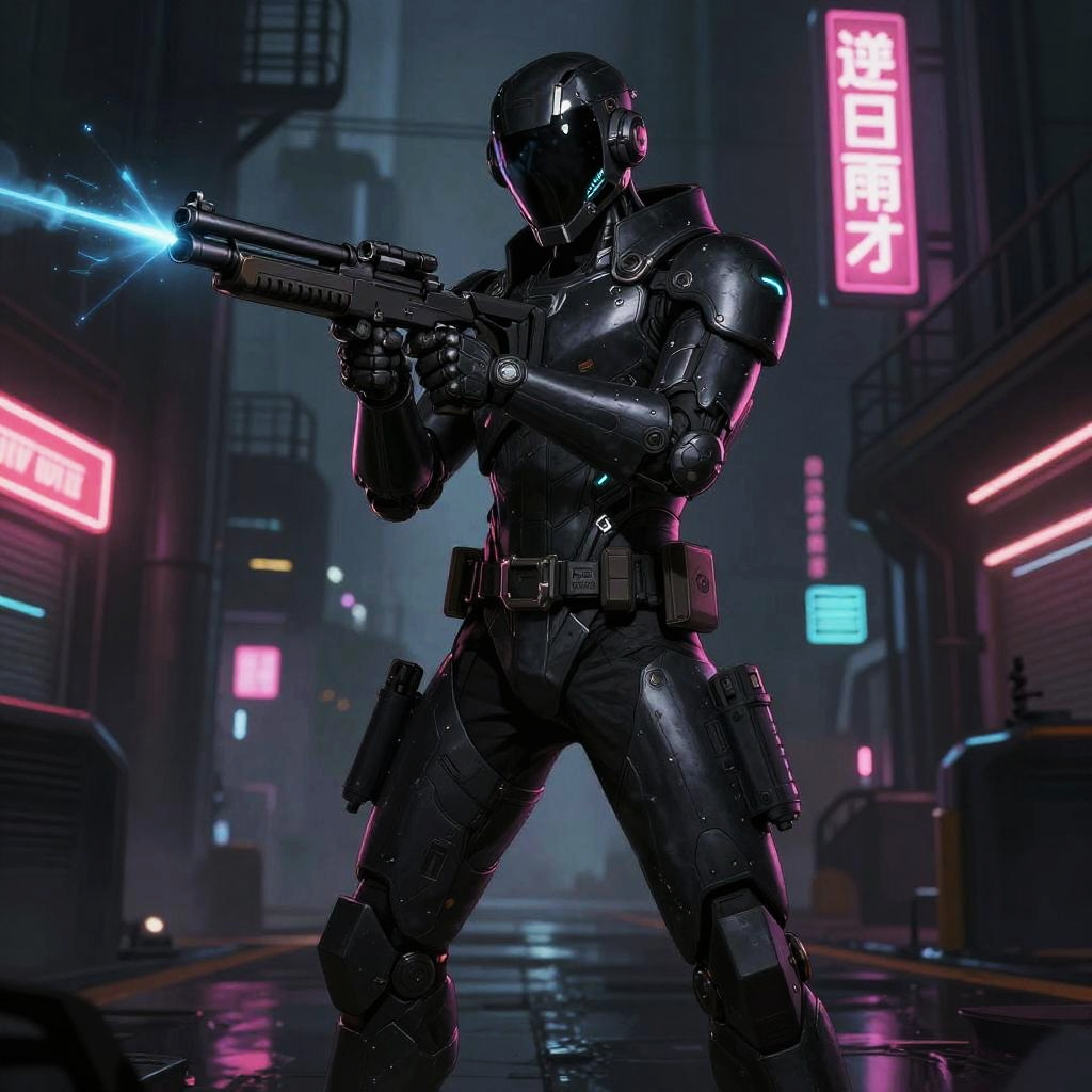 Cybernetic Bounty Hunter in Neon Zone