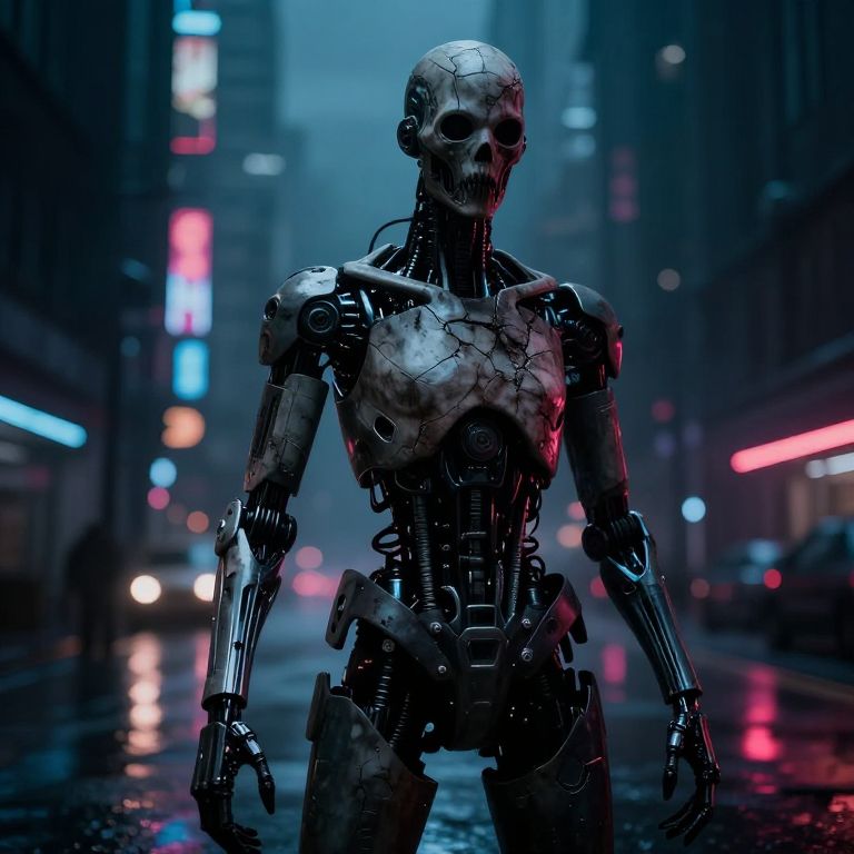 Intriguing vaqueros day of the dead robot,background is a western town,IW 4.0 engine,wide angle,fashion photography,