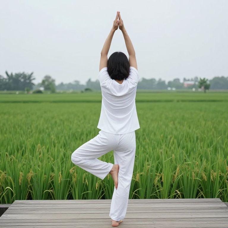 Serene Tree Pose in Rice Field
