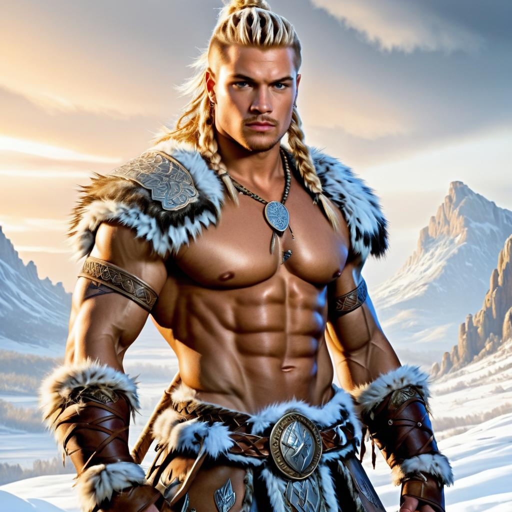 Muscular Viking Warrior in Snowy Landscape