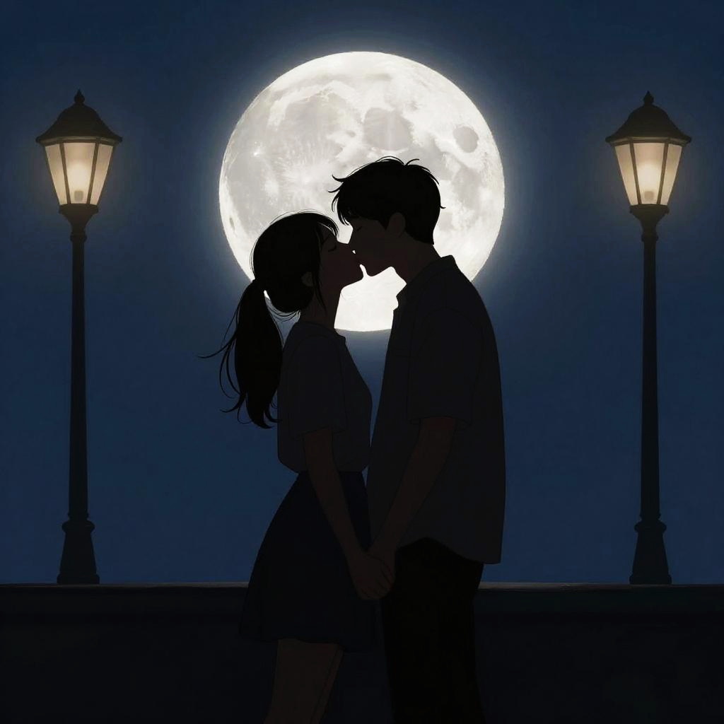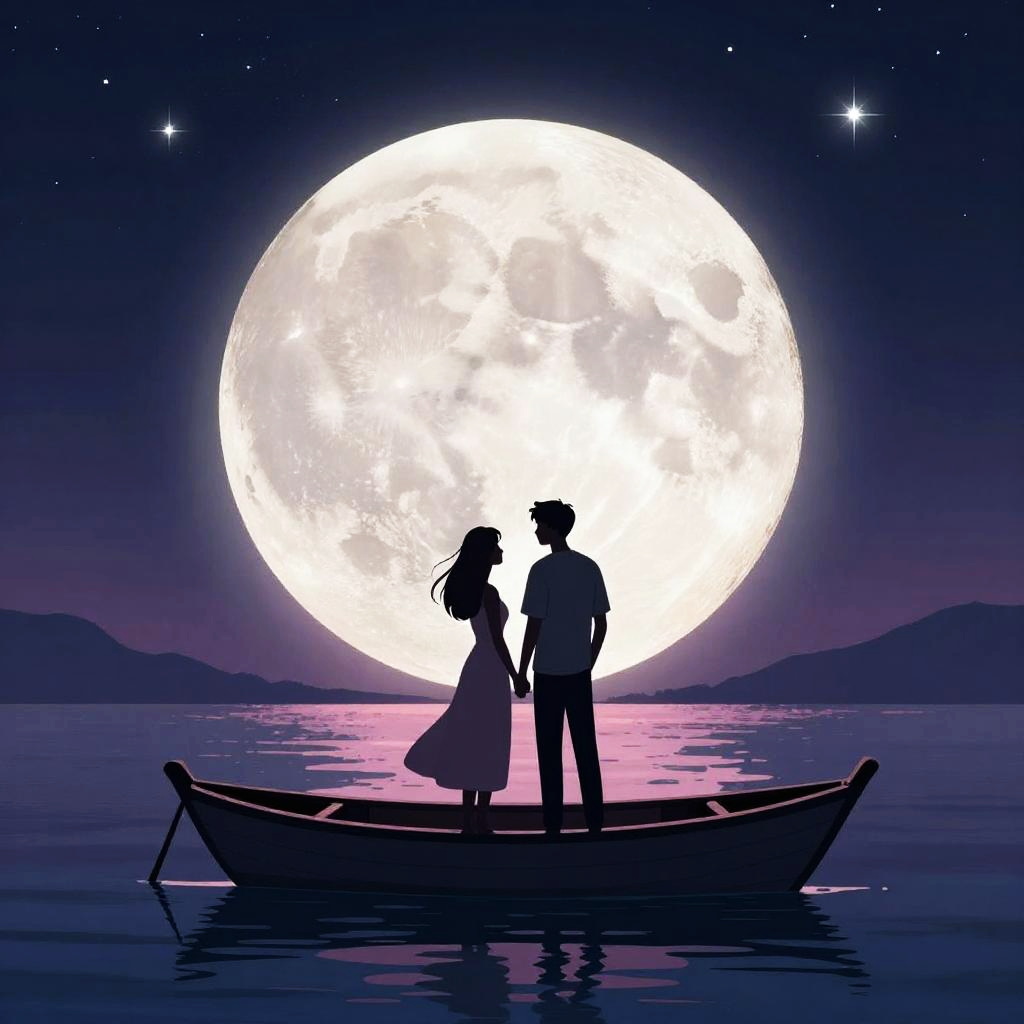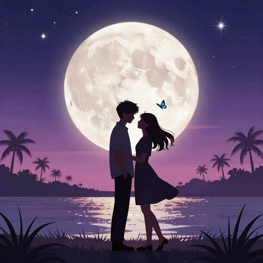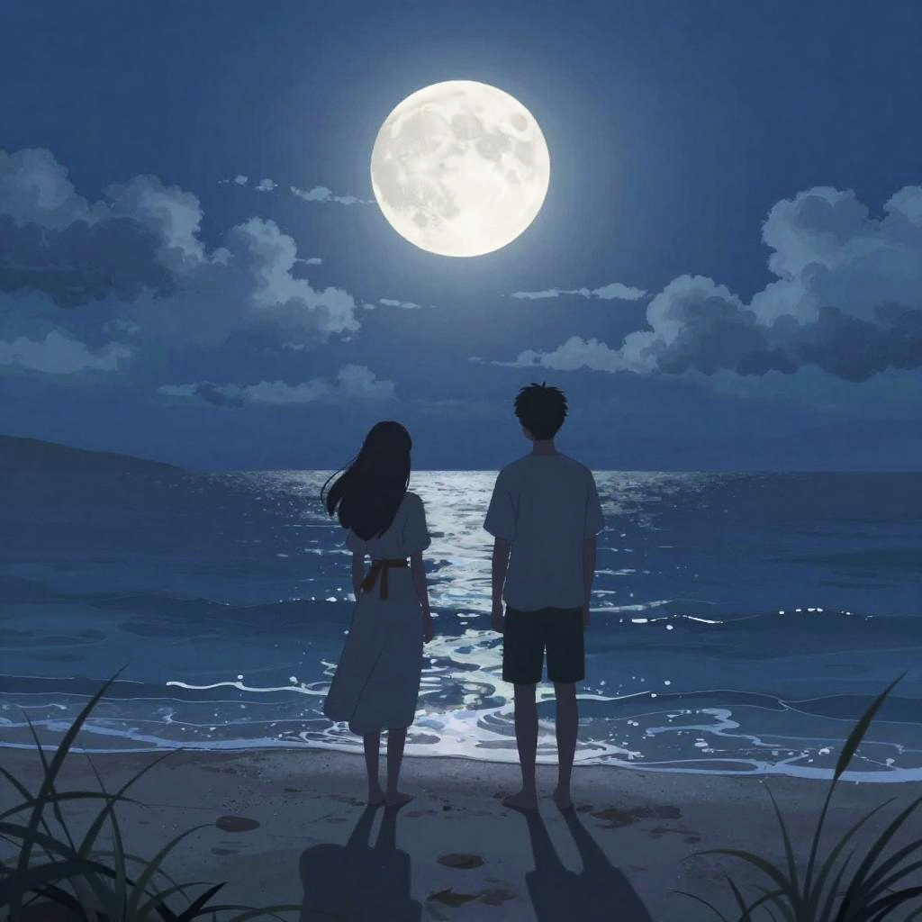 Romantic Moonlit Anime Beach Scene