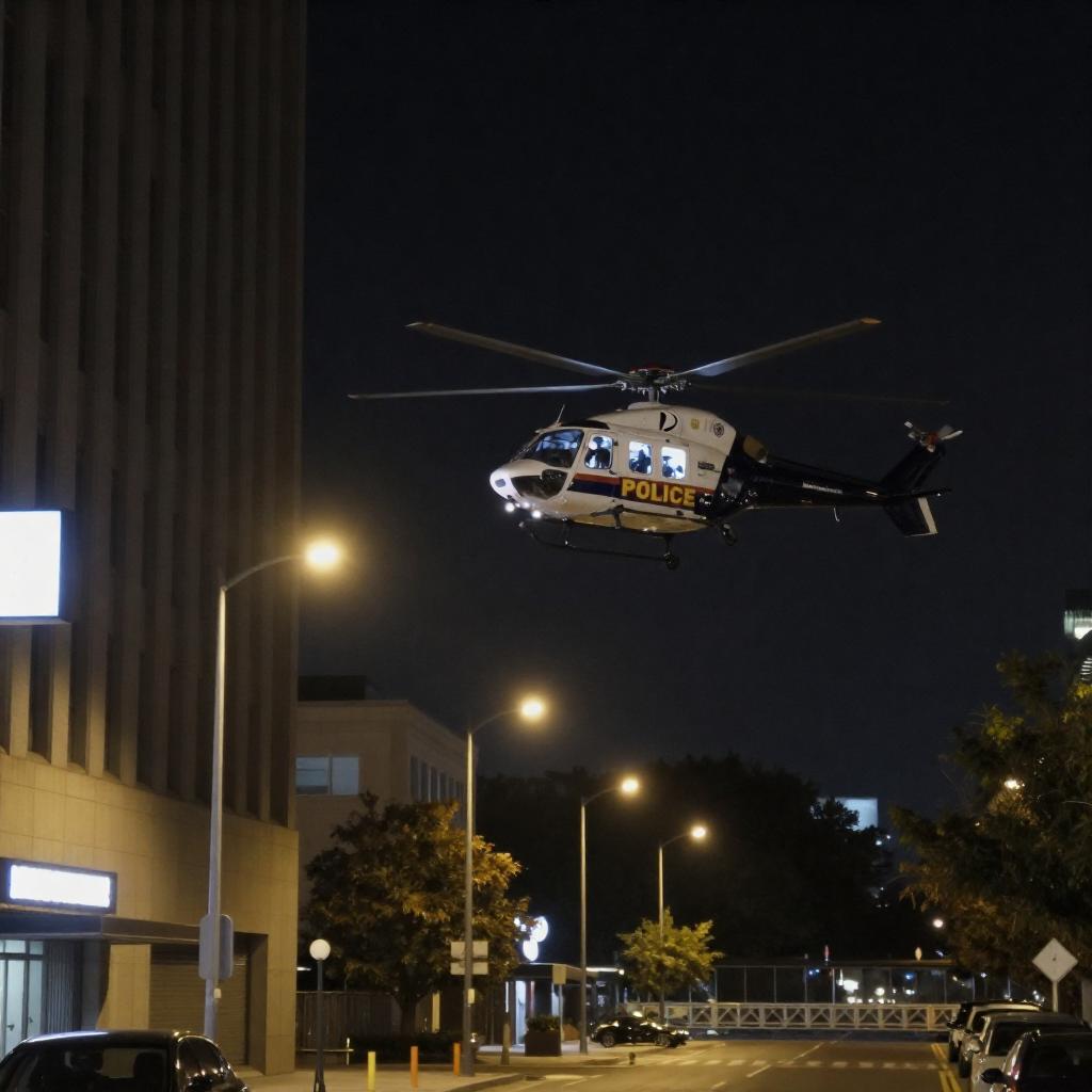 Nighttime Cityscape With Police Helicopter
