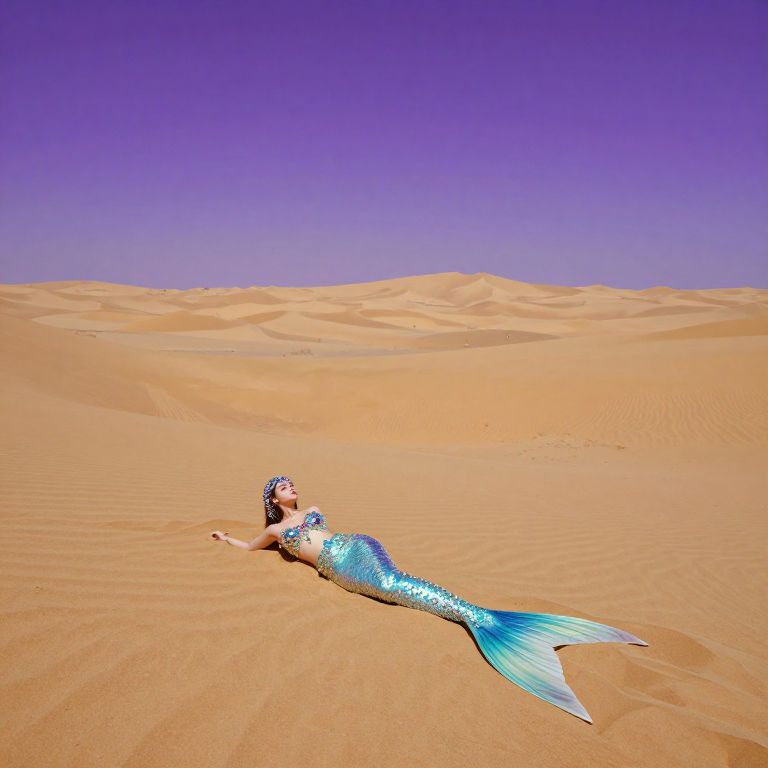 Surreal Desert Mermaid Under Violet Sky