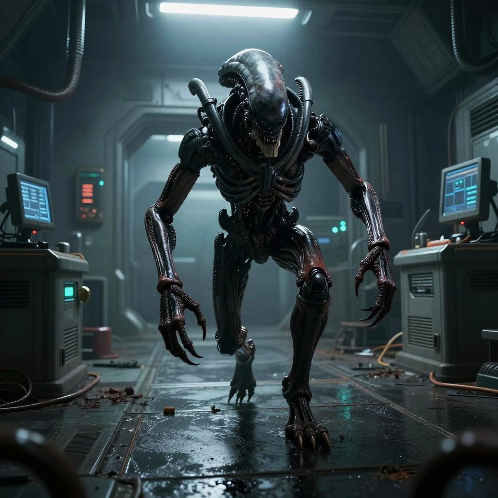 Xenomorph Emerging from Alien Eggs