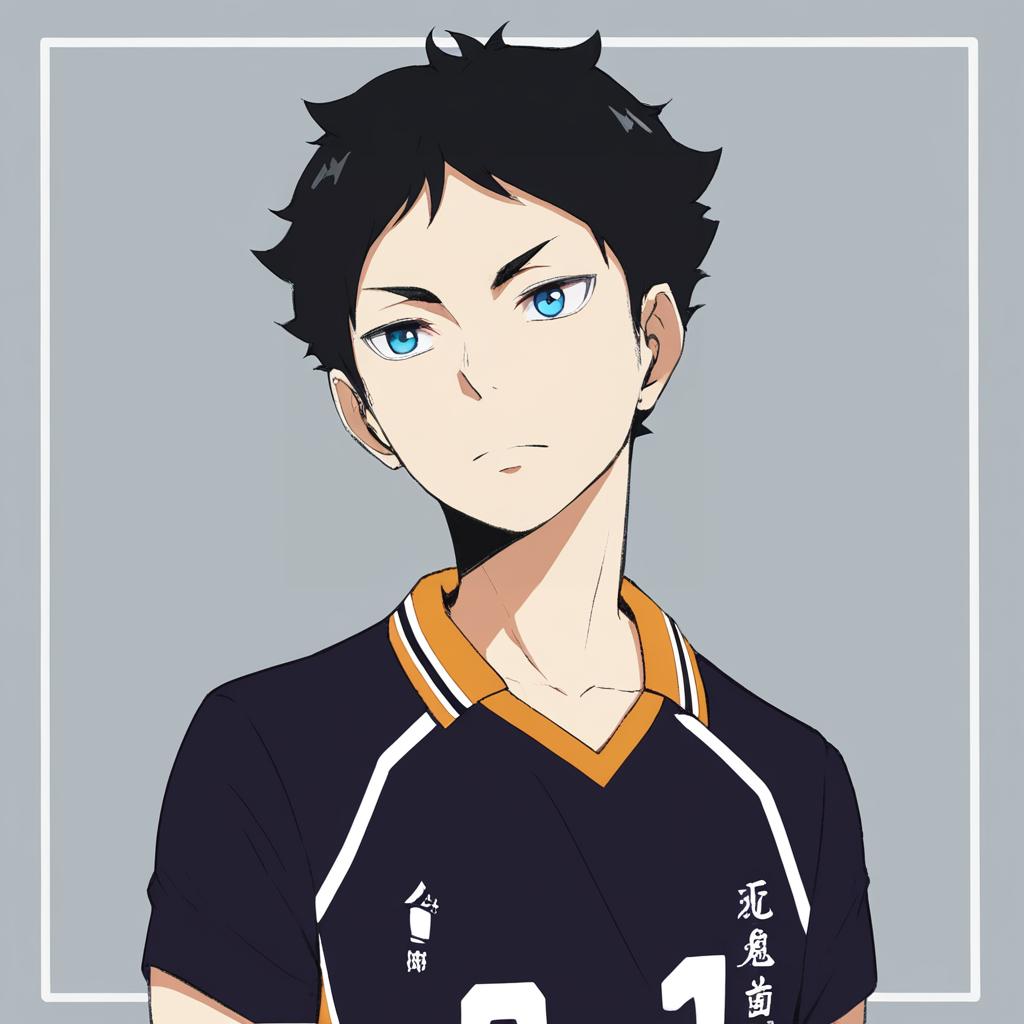 Akaashi keiji, haikyuu!!, 1boy, blue eyes, very short hair, black hair, short hair, by artist fukuro daizi, leet