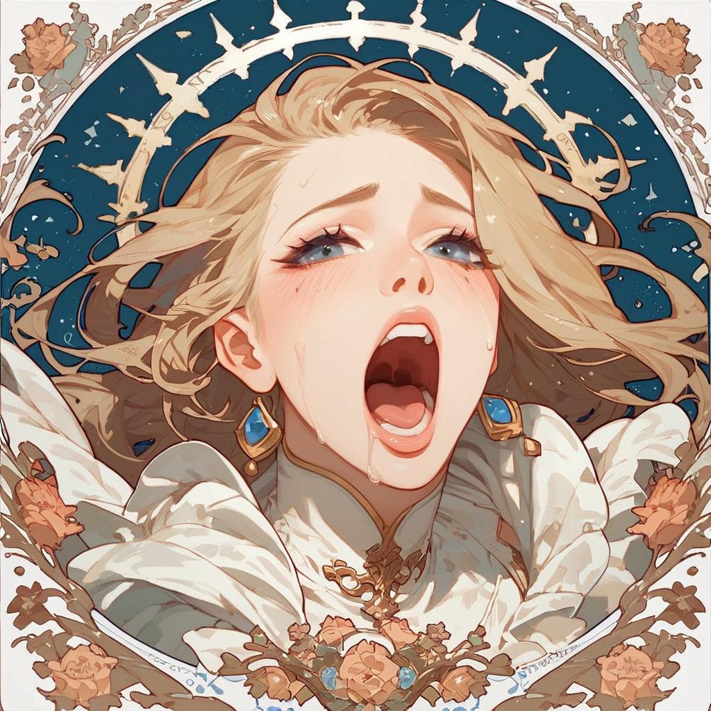 Score_9, score_8_up, score_7_up, art nouveau style, screaming, open mouth, crying with eyes open