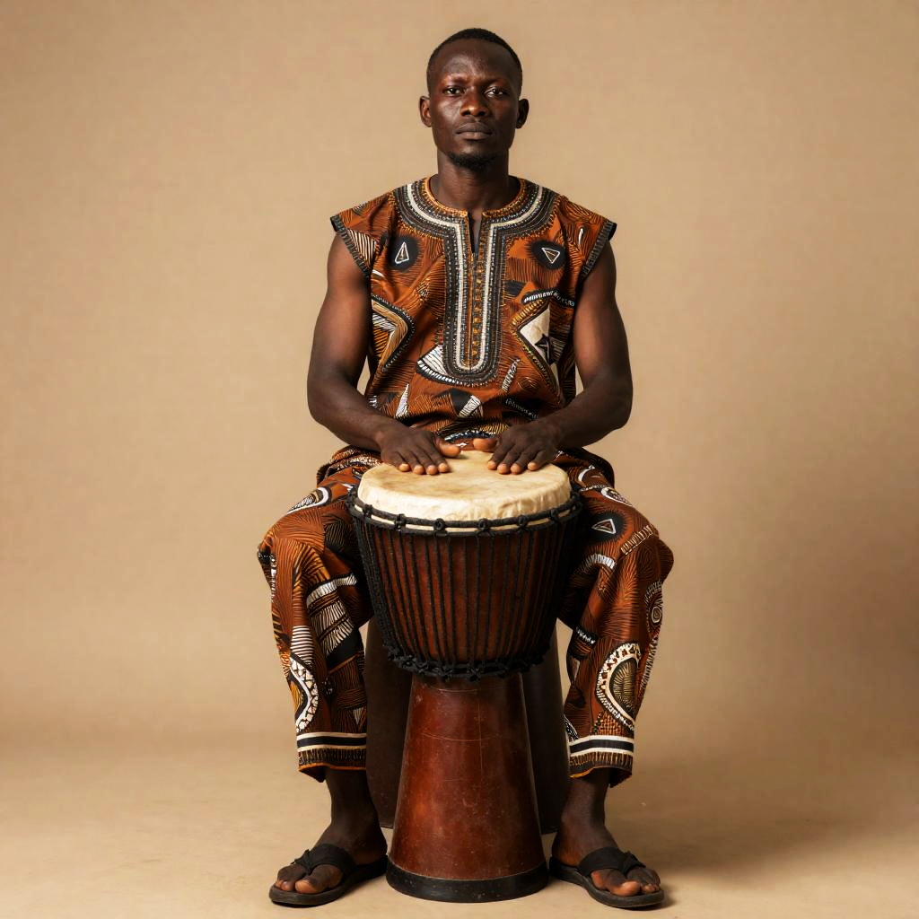 Realistic West African Drummer Portrait