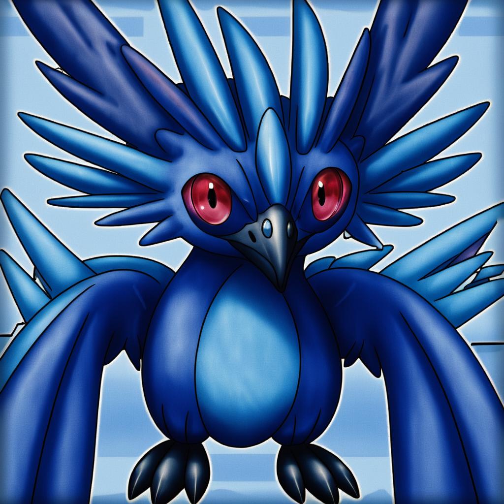 Articuno, pokemon, no humans, red eyes, pokemon (creature), bird, claws, by artist e10, anime