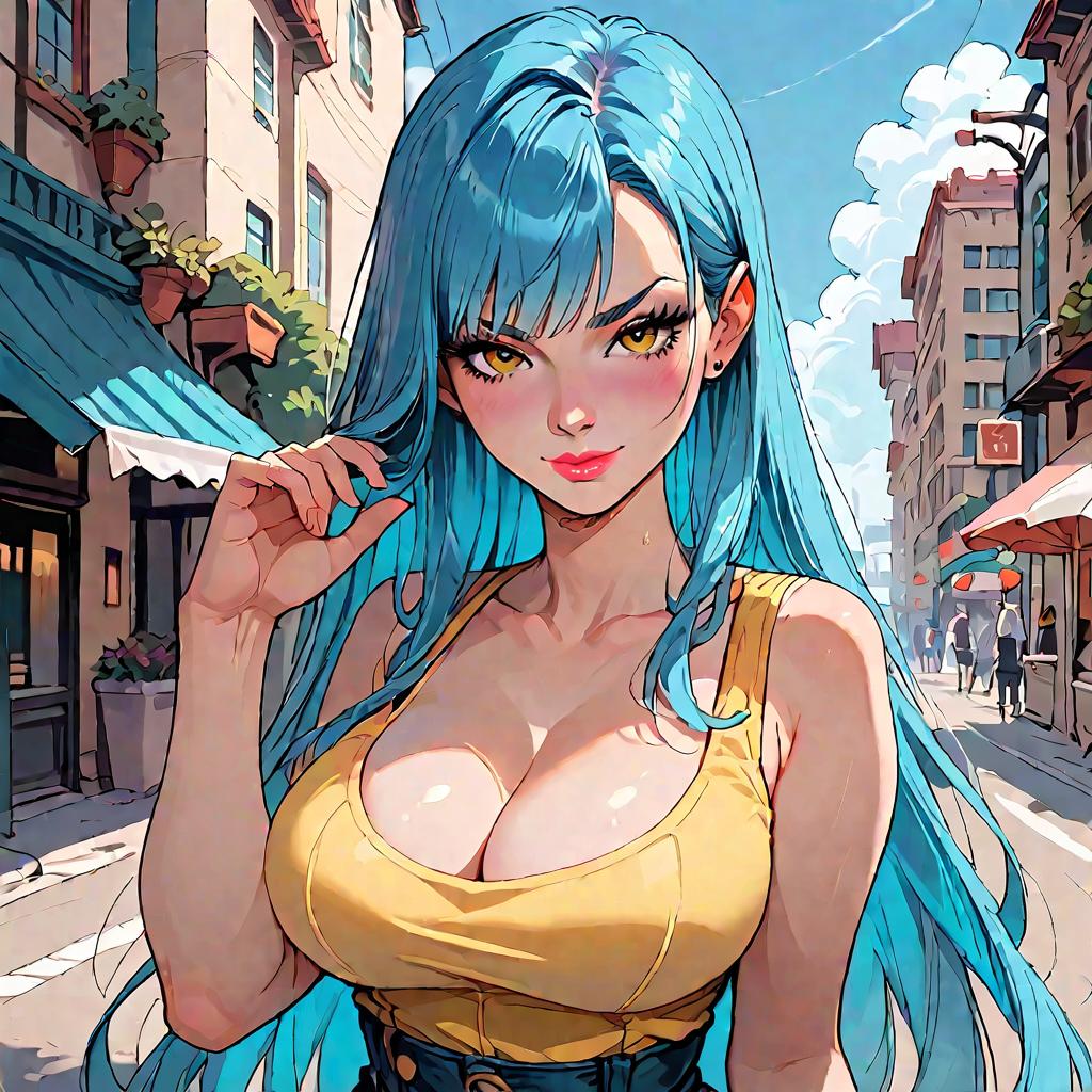 Anime Girl with Blue Hair and Yellow Eyes