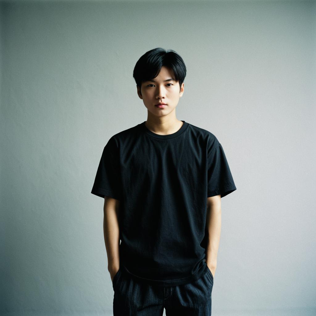 Ving tsun kung,1boy, male focus, solo, black hair, shirt, pants, realistic, black shirt, looking at viewer, standing, short hair, closed mouth