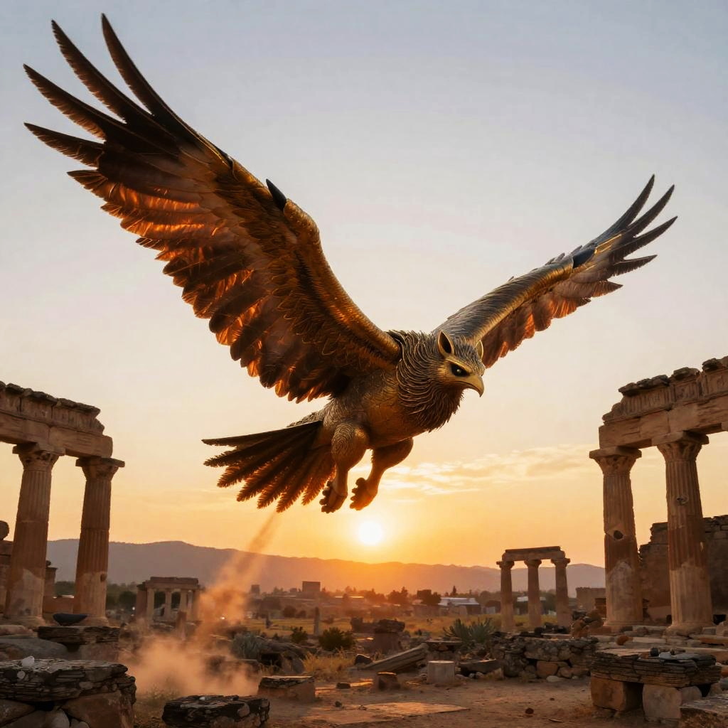 Angel Wings Soaring Over Ruins