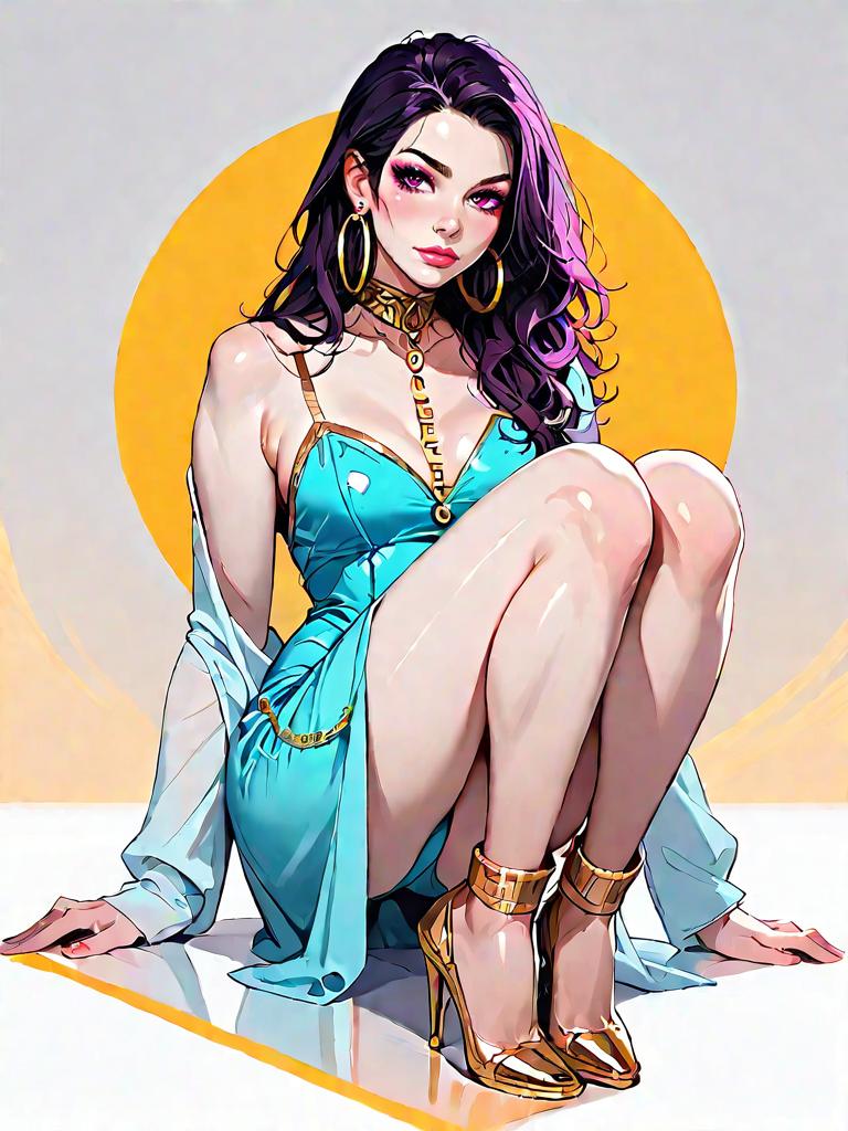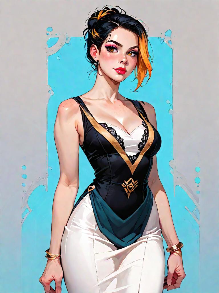 1girl, source_comics, realistic face, full body shot, Woman, cocktail glamour, navy blue bodycon mini dress with sequin and bead embellishments, sheer long sleeves with detailed embroidery, crew neckline, partial sheer overlay, fitted silhouette, photo studio background.