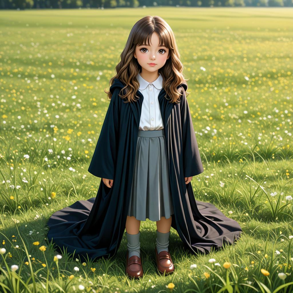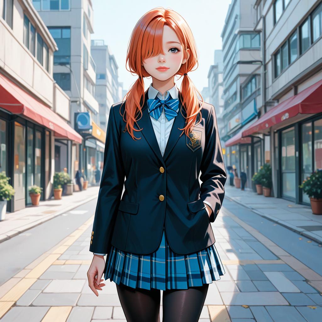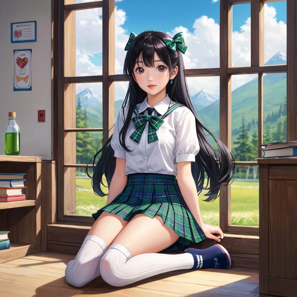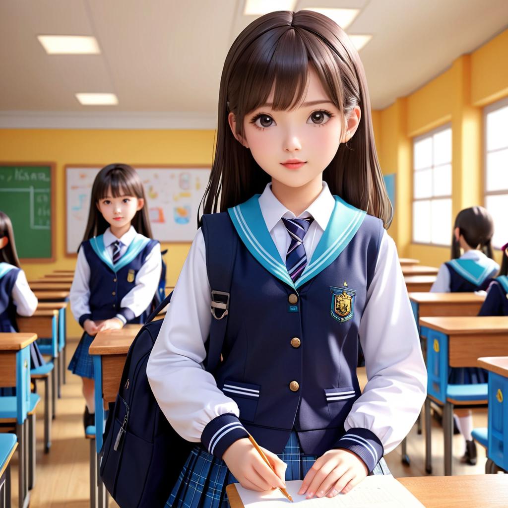 Detailed Schoolgirl on Bench Artwork