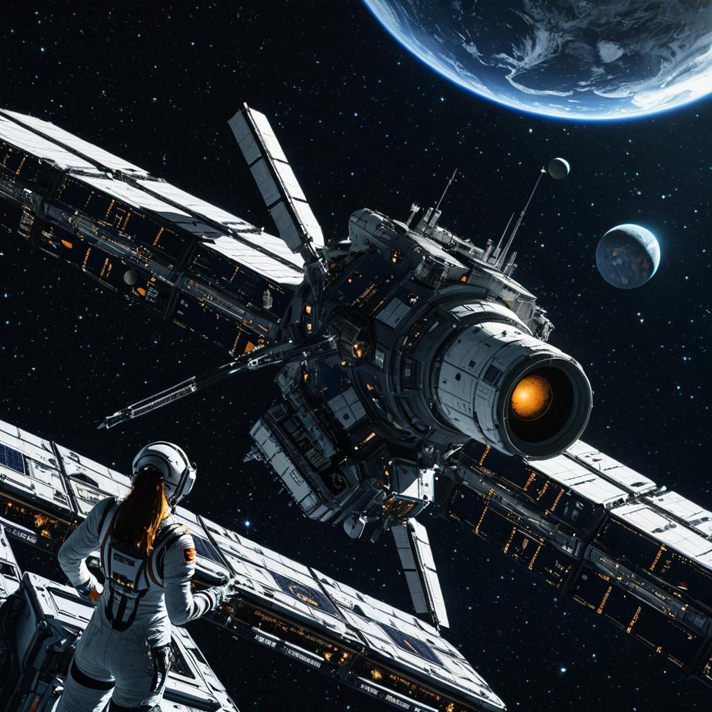 Mechanical Space Station with Girl