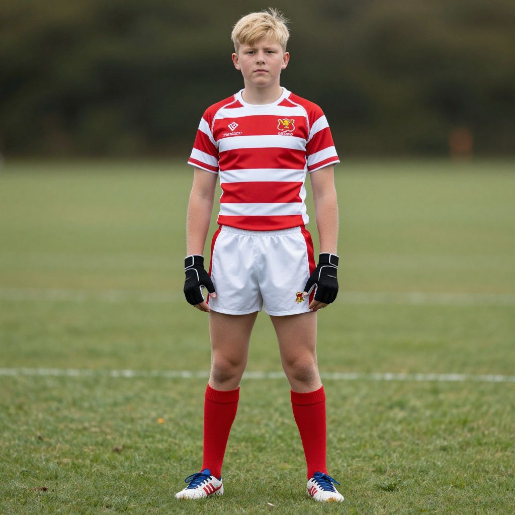 Young Rugby Player in Full Uniform