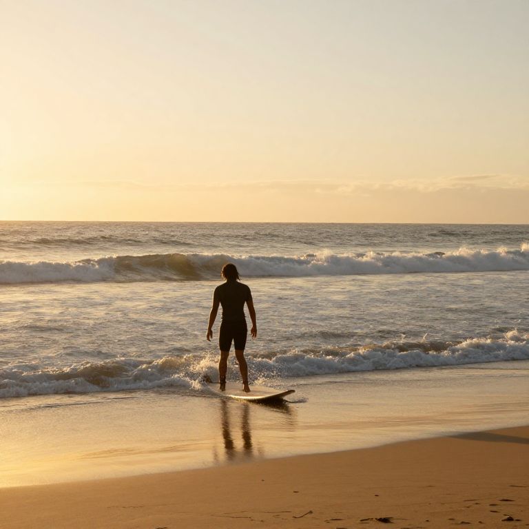 Solitary Surfer at Golden Shore