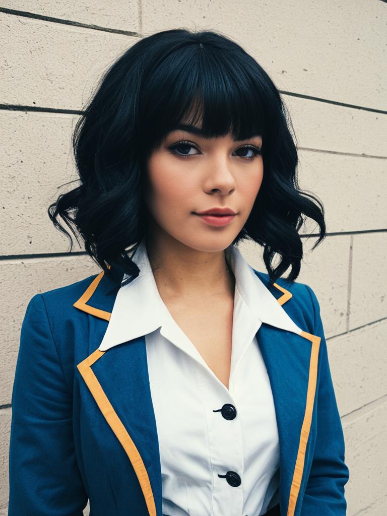 Sexy cosplay woman character wearing Ushio Okazaki costume. Realistic photo. Jane Doe dressed as Ushio Okazaki --sref 1391