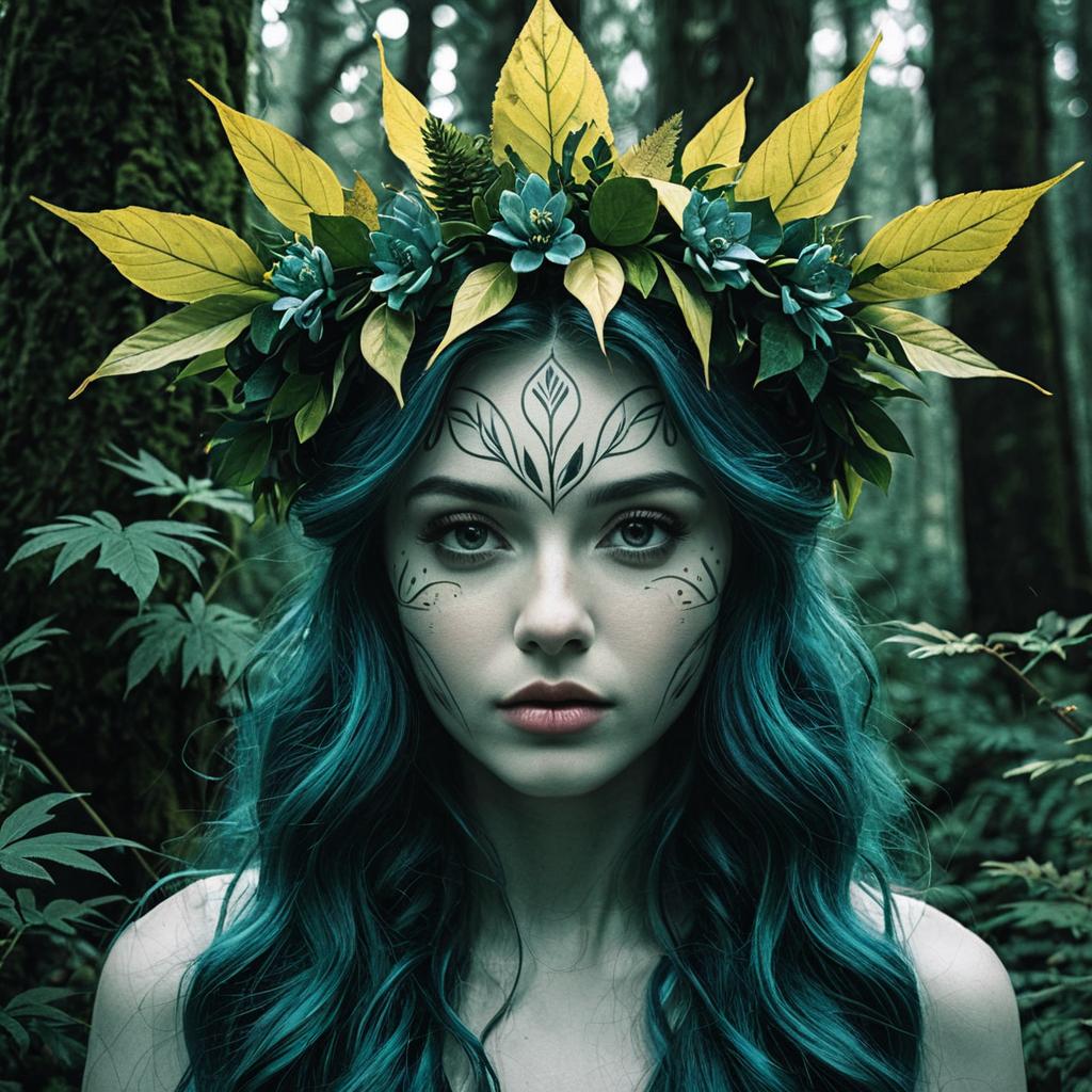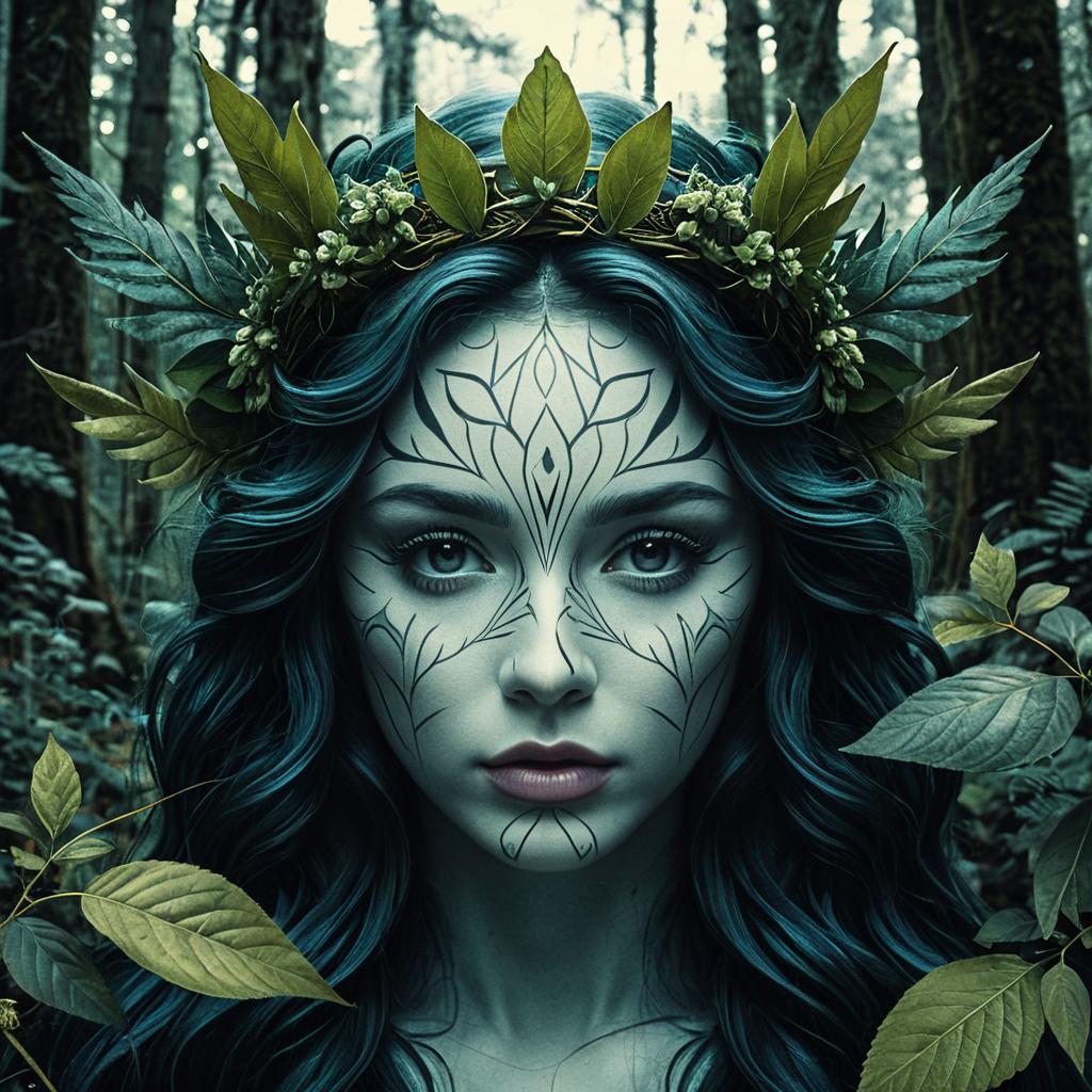Digital artwork of young woman face with thoughtful eyes wearing vintage earrings in the style of James Jean