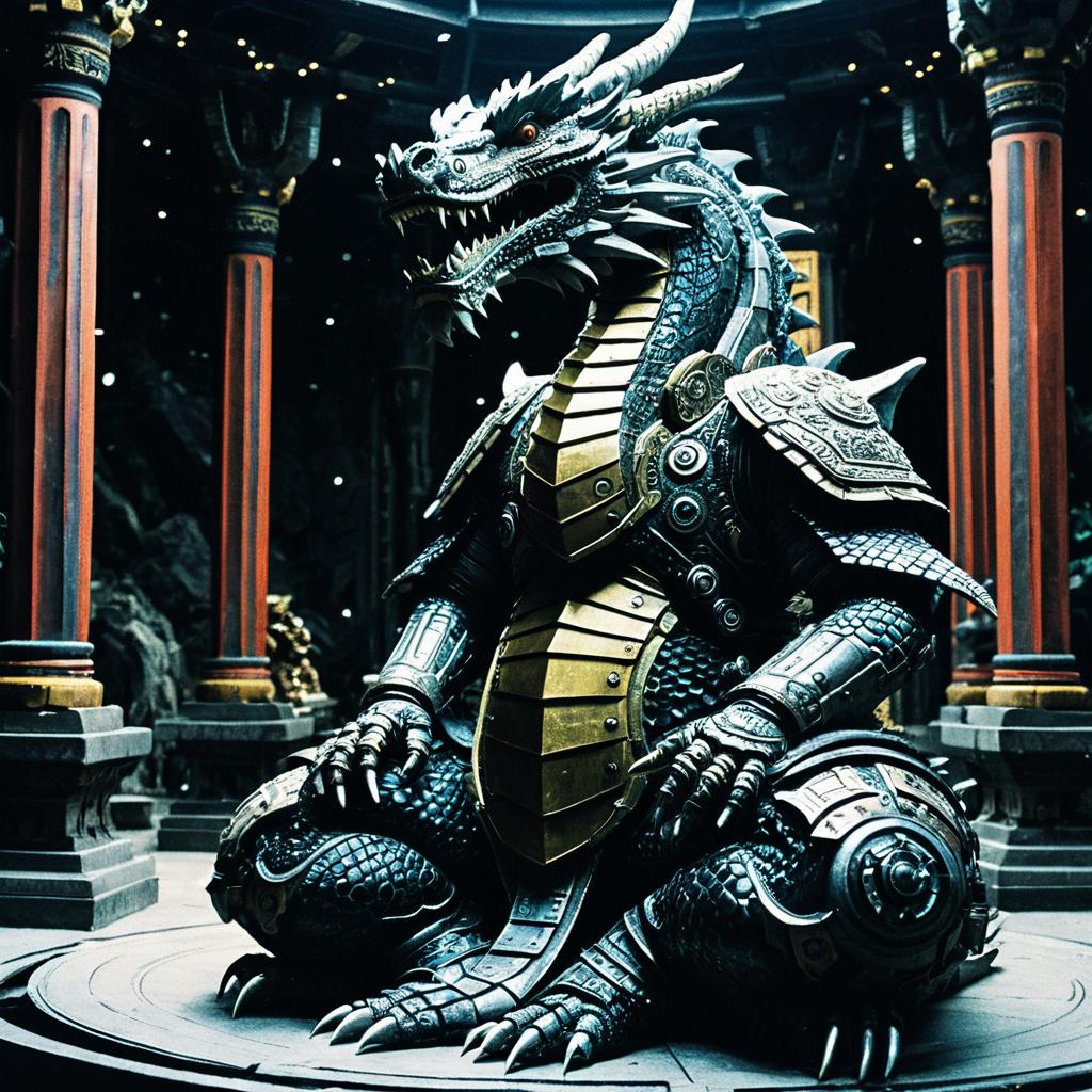 Mechanical Dragon Meditating in Ancient Temple