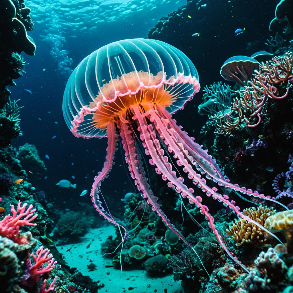 X-Ray artwork of an extraterrestrial jellyfish, vibrant inner patterns, surreal and otherworldly with translucent and radiant effects