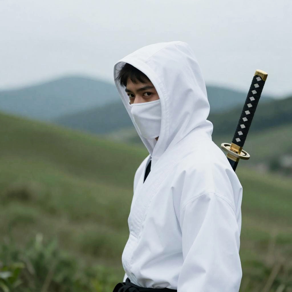 Ninja in White Outfit Holding Rope