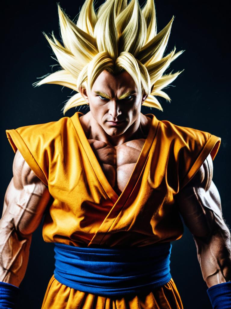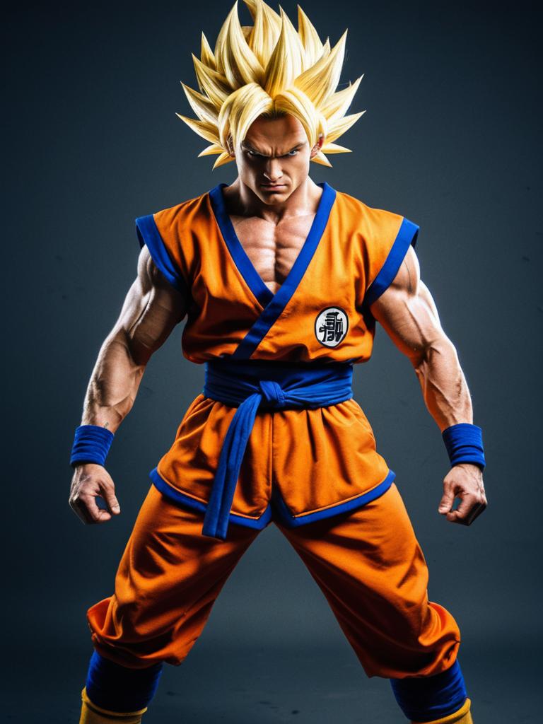 Man in Super Saiyan Costume, photorealistic detailed studio portrait
