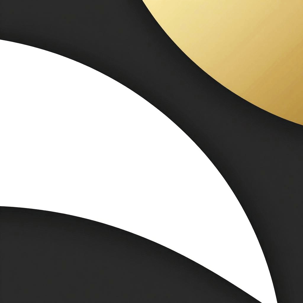 Abstracto minimalist composition combining smooth curves and sharp angular shapes, limited color palette of black, white, and gold, clean and sophisticated look on a matte background, emphasizing form and space through subtle gradients and shadows.