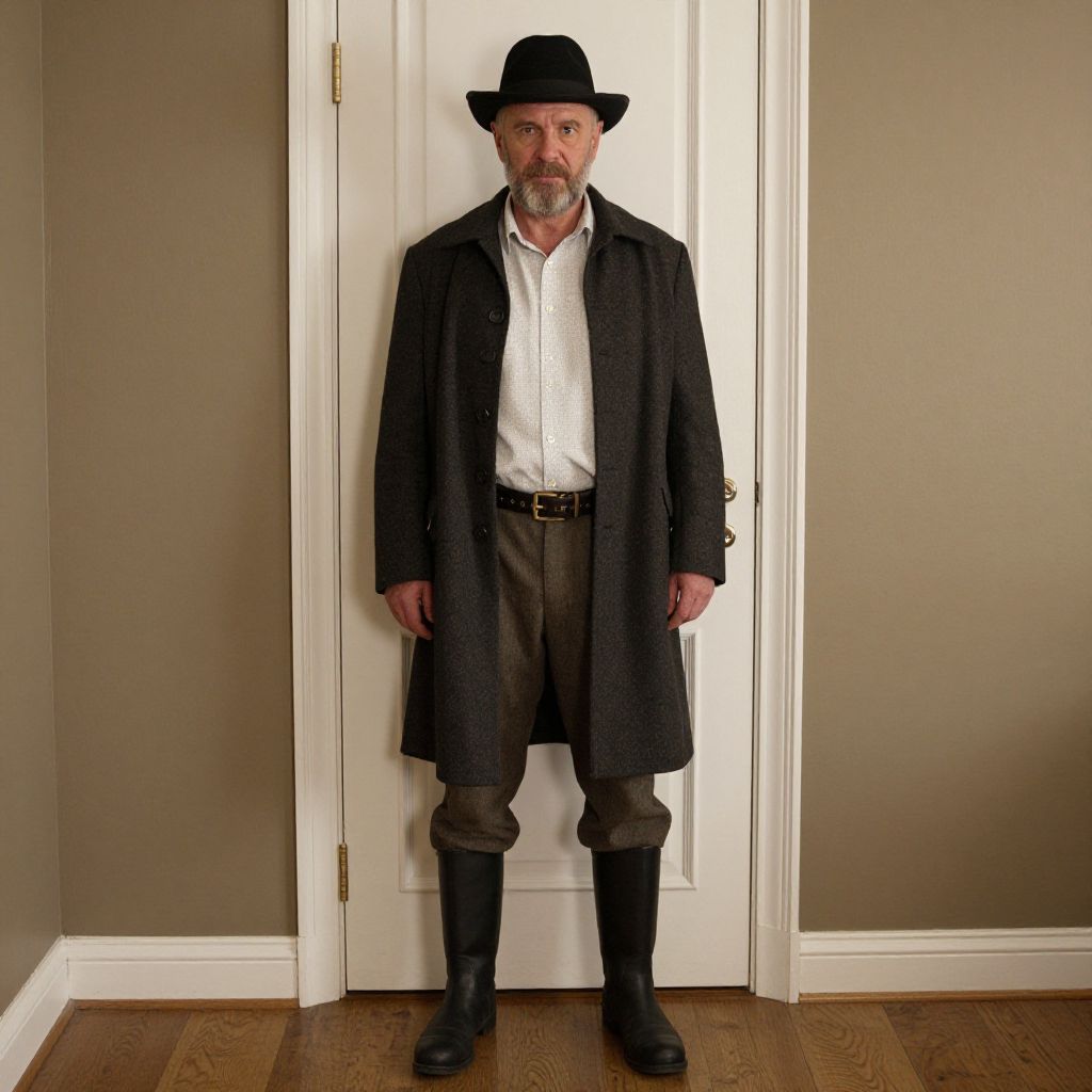 Rustic Elderly Man by Carved Wall