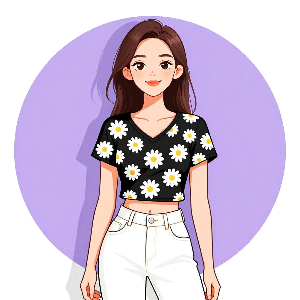 Casual Woman with Floral Graphic Tee