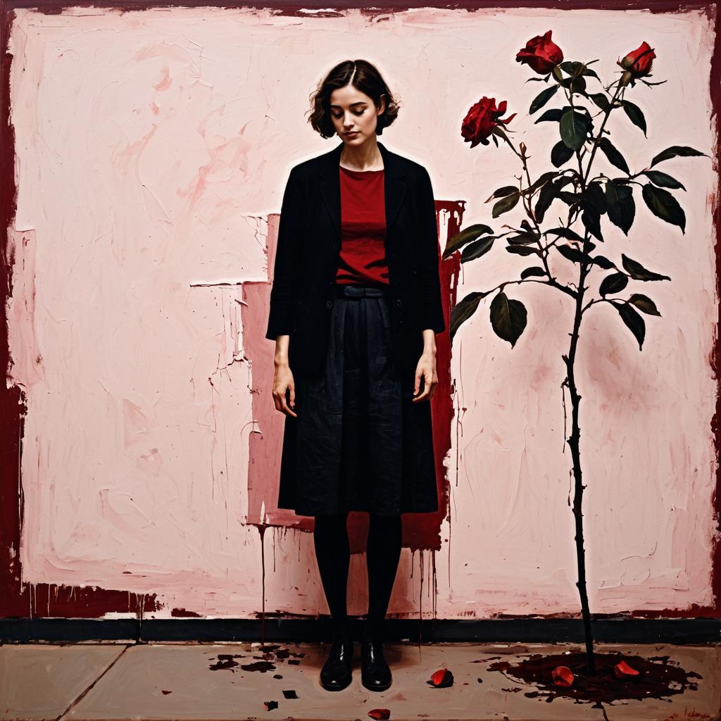 Ambient Lighting Abstract minimalistic painting of a sailor and a lighthouse keeper by the apple tree, full body, by Georgia O'Keeffe, rough impasto technique, soft blues with golden touches