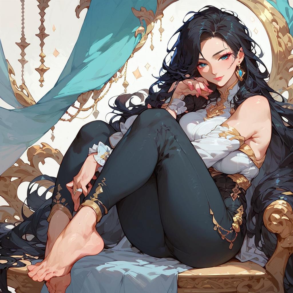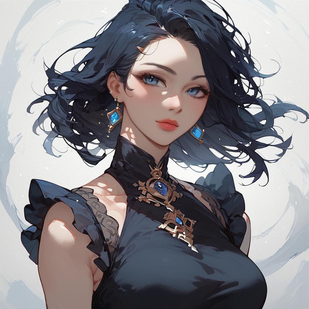 Score_9, score_8_up, score_7_up, score_6_up, score_5_up, score_4_up, , source_anime, nico_v1, black hair, 1girl, solo, dress, zettai ryouiki, cleavage, thighhighs