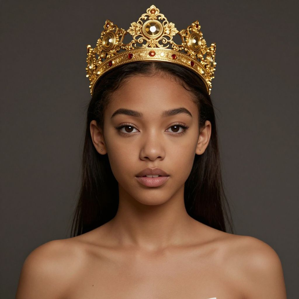 Portrait of willow smith, gold crown barechest, intricate, elegant, highly detailed, artstation, concept art, sharp focus, ruan jia, jurgens, orientalism, bouguereau