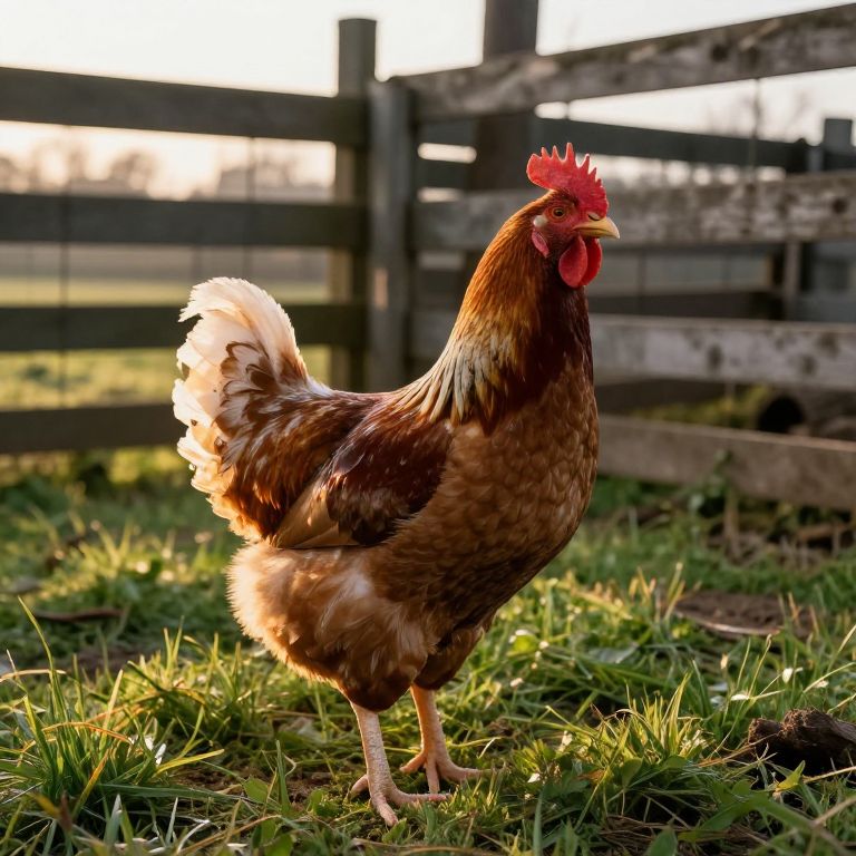 Rustic Farmyard Hen at Sunrise
