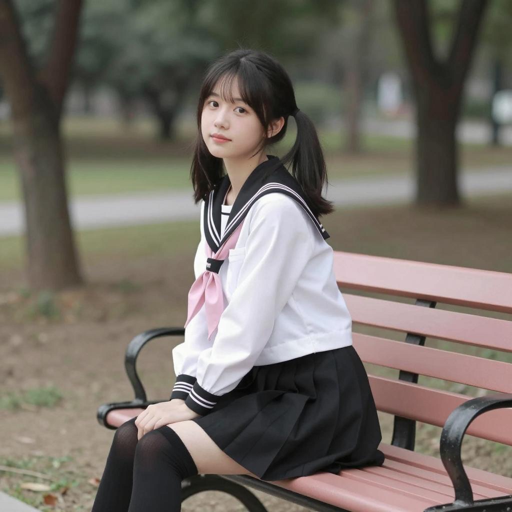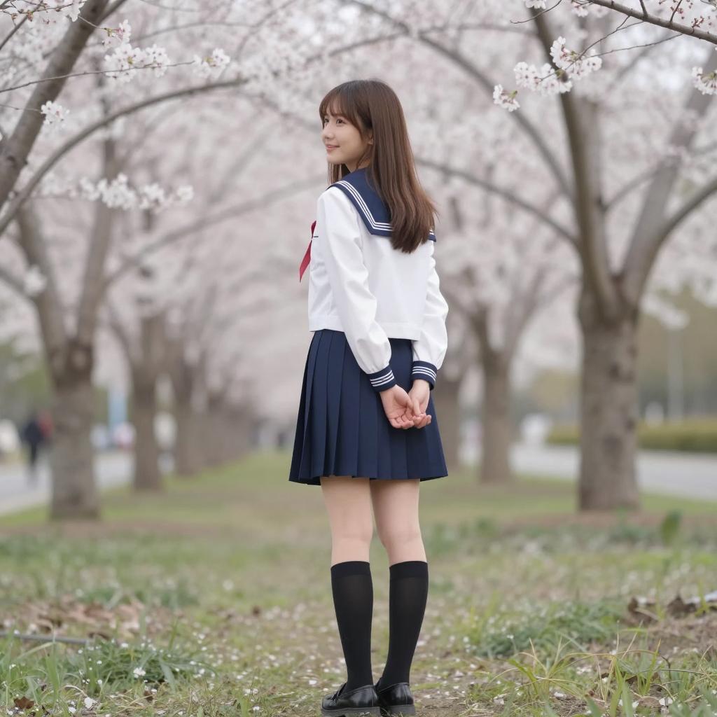 Cherry Blossom Schoolgirl in Japan
