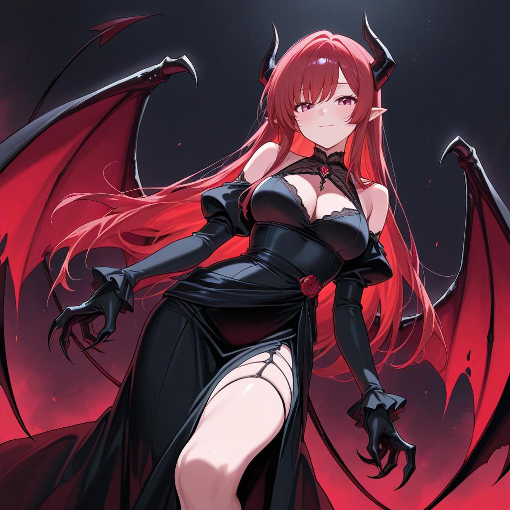 Score_9, score_8_up, score_7_up, source_anime, 1girl, green eyes, heterochromia, blue eyes, pink hair, succubus, succubus outfit, black outfit, small breasts, huge thighs, huge hips
