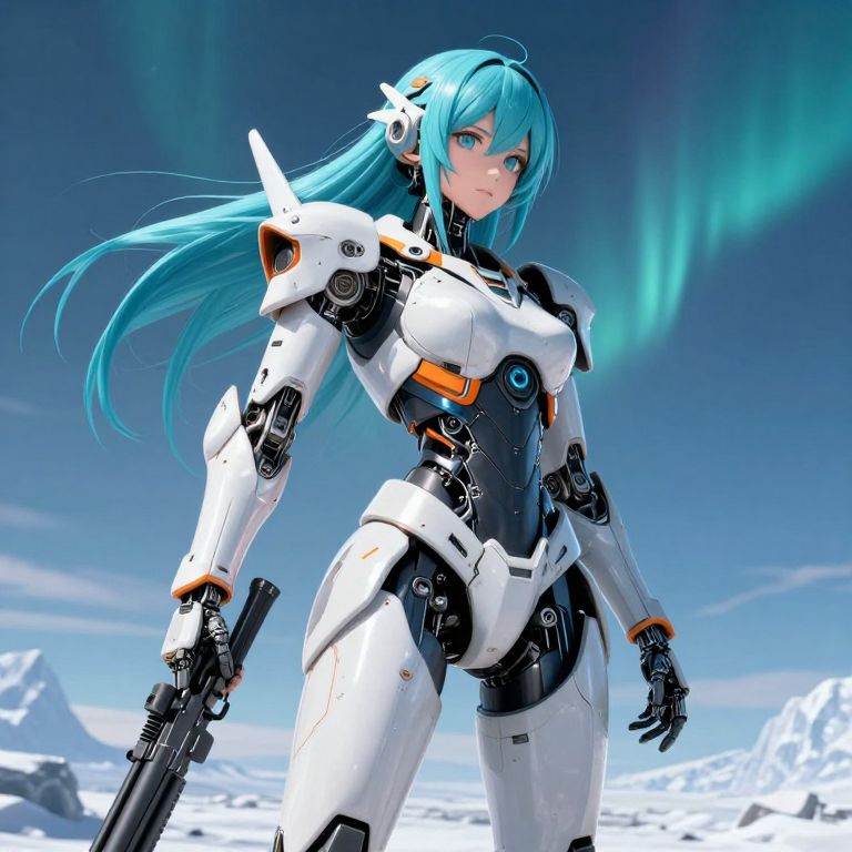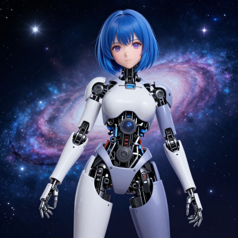 Prêt-À-Porter satellite moe girl, kore genre, anime style image, mechanical girl, background galaxy - Upscaled by,