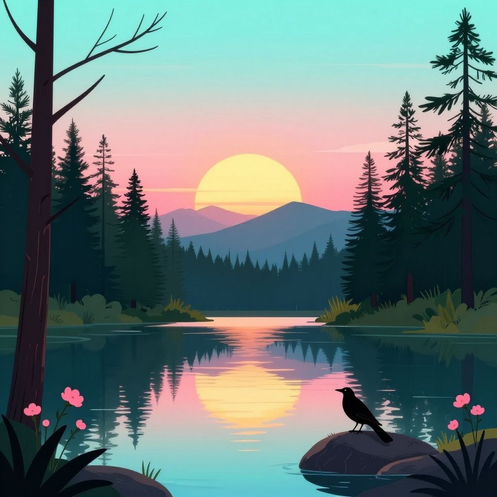 Steampunk vector illustration of a sunrising Good Morning with green natures, ocean, forest. Make it realistic, ultra-detailed, very high quality, hyper realistic, 8k,