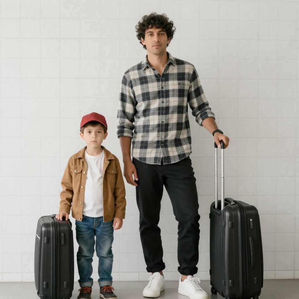 Bearded Man with Dog by Blue Suitcase