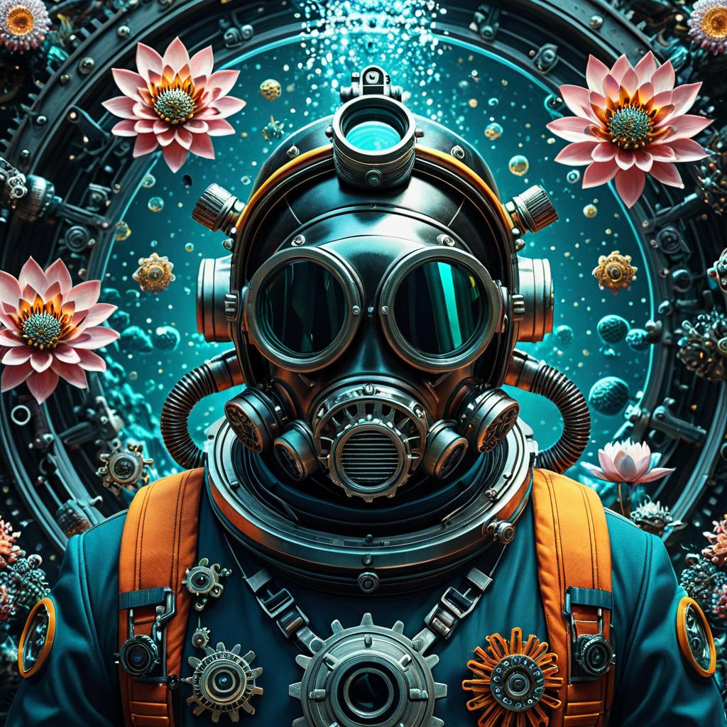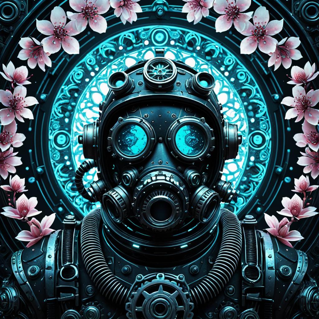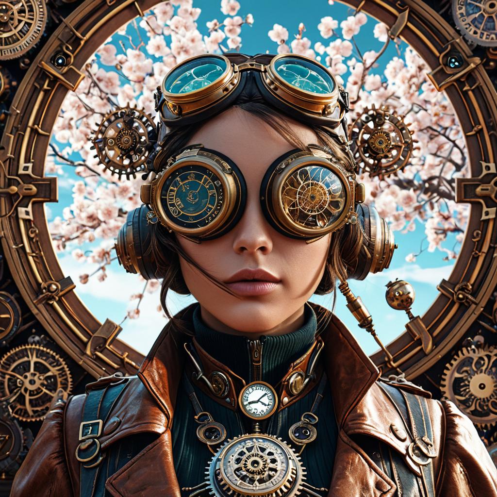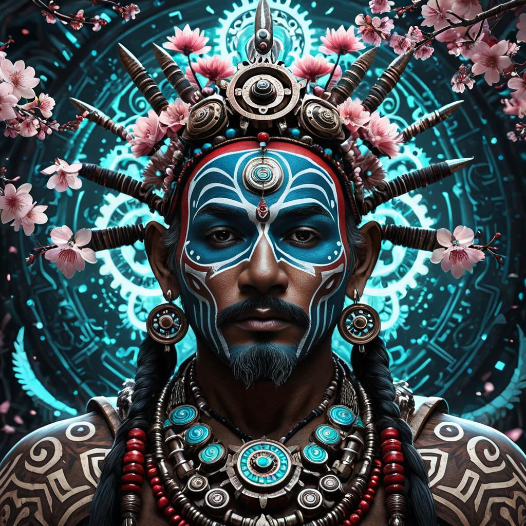 A headshot of a mystical elf with glowing eyes, offset in the frame, surrounded by 3D fractals, mandelbulbs, mandalas, cherry blossoms, metal gears, and swirling bioluminescent energy, art by Ellysiumn, Loish, 8k octane render, hyperrealistic, ZBrush