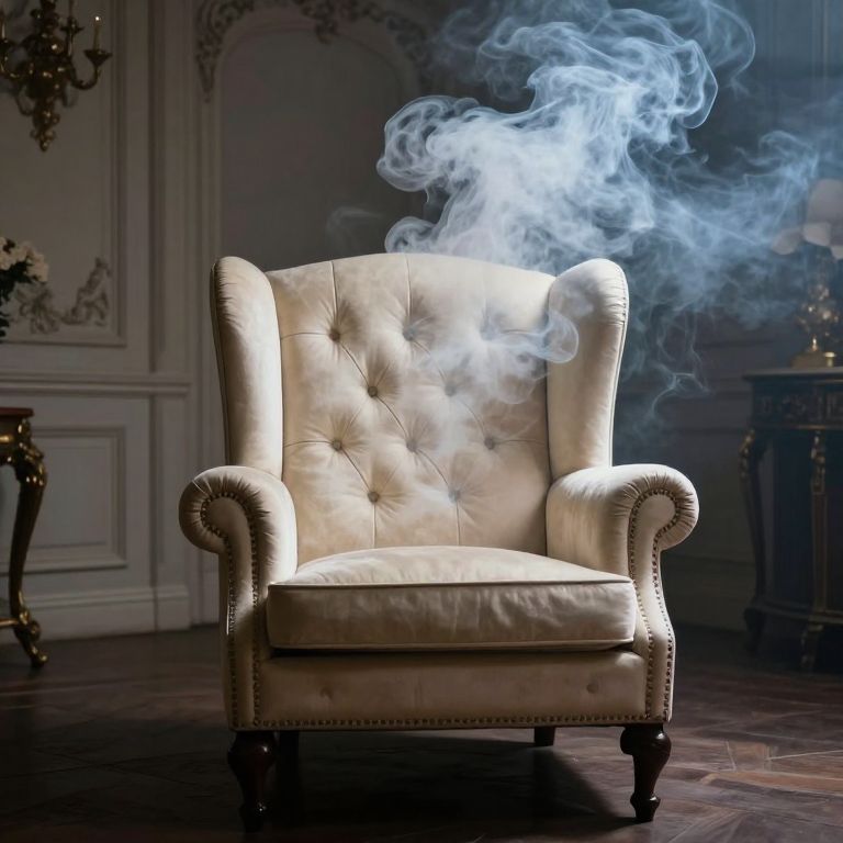In a hushed chamber of muted tones and ancient whispers, a regal armchair stands as a silent sage, its tufted back exhaling wisps of thought like smoke, as if engaged in an eternal dialogue with the unseen, embodying the solitude of wisdom and the transcendence of contemplation.