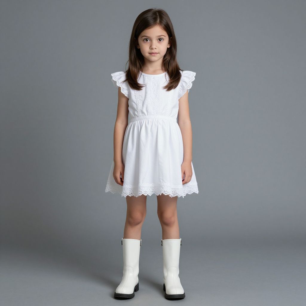 Realistic Girl in White Dress and Boots