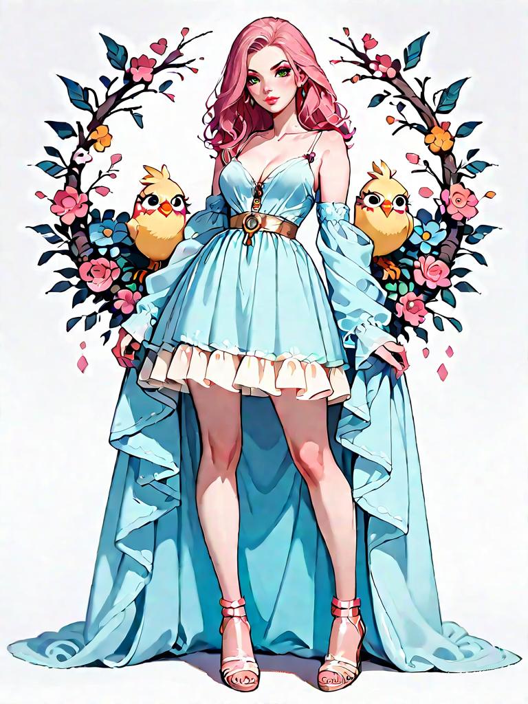 1girl, source_comics, realistic face, full body shot, Woman, chic, form-fitting midi dress in soft pink, thin spaghetti straps, straight neckline, visible zipper closure at front, slit at the center of the hemline, paired with strappy heeled sandals.