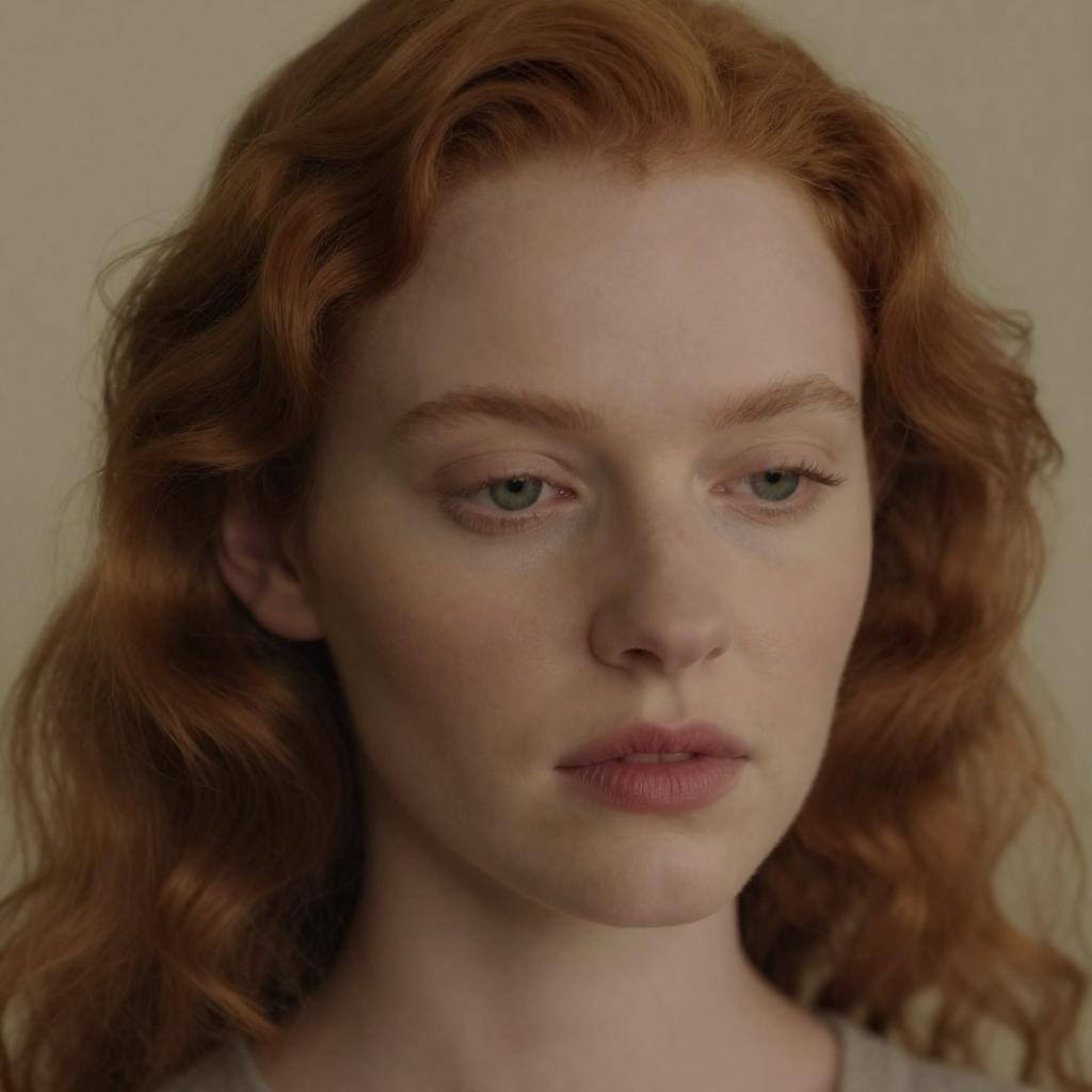 Photo of 18 y.o woman, perfect eyes, short red hair, braid, looks at viewer, cinematic shot, hard shadows, RAW candid cinema, 16mm, color graded portra 400 film, remarkable color, ultra realistic, textured skin, remarkable detailed pupils, realistic dull skin noise, visible skin detail, skin fuzz, dry skin, shot with cinematic camera, high quality photography, 3 point lighting, flash with softbox, 4k, Canon EOS R3, hdr, smooth, sharp focus, high resolution, award winning photo, 80mm, f2.8, bokeh